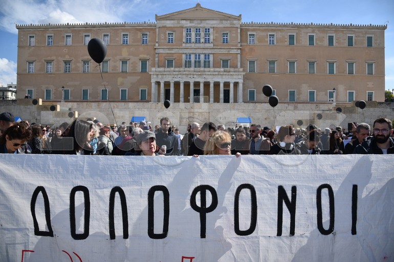Ισχυρές αστυνομικές δυνάμεις με χρήση χημικών, απώθησαν τους διαδηλωτές και μετά από λίγη ώρα κατέβηκε και το πανό στο οποίο αναγράφονταν «Τώρα η οργή να γίνει ανατροπή, το έγκλημα αυτό δεν θα ξεχαστεί».