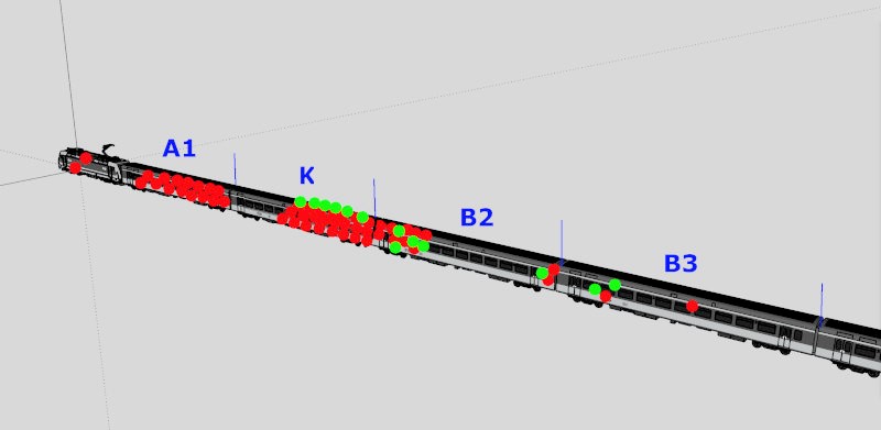 Η παραπάνω εκτίμηση περιέχει μια μικρή αβεβαιότητα (ενδεχομένως της τάξης των 2-3 ατόμων μεταξύ Α1, Κ και Β2) λόγω όρθιων στο κυλικείο ή ατόμων σε διαδρόμους και τουαλέτες.