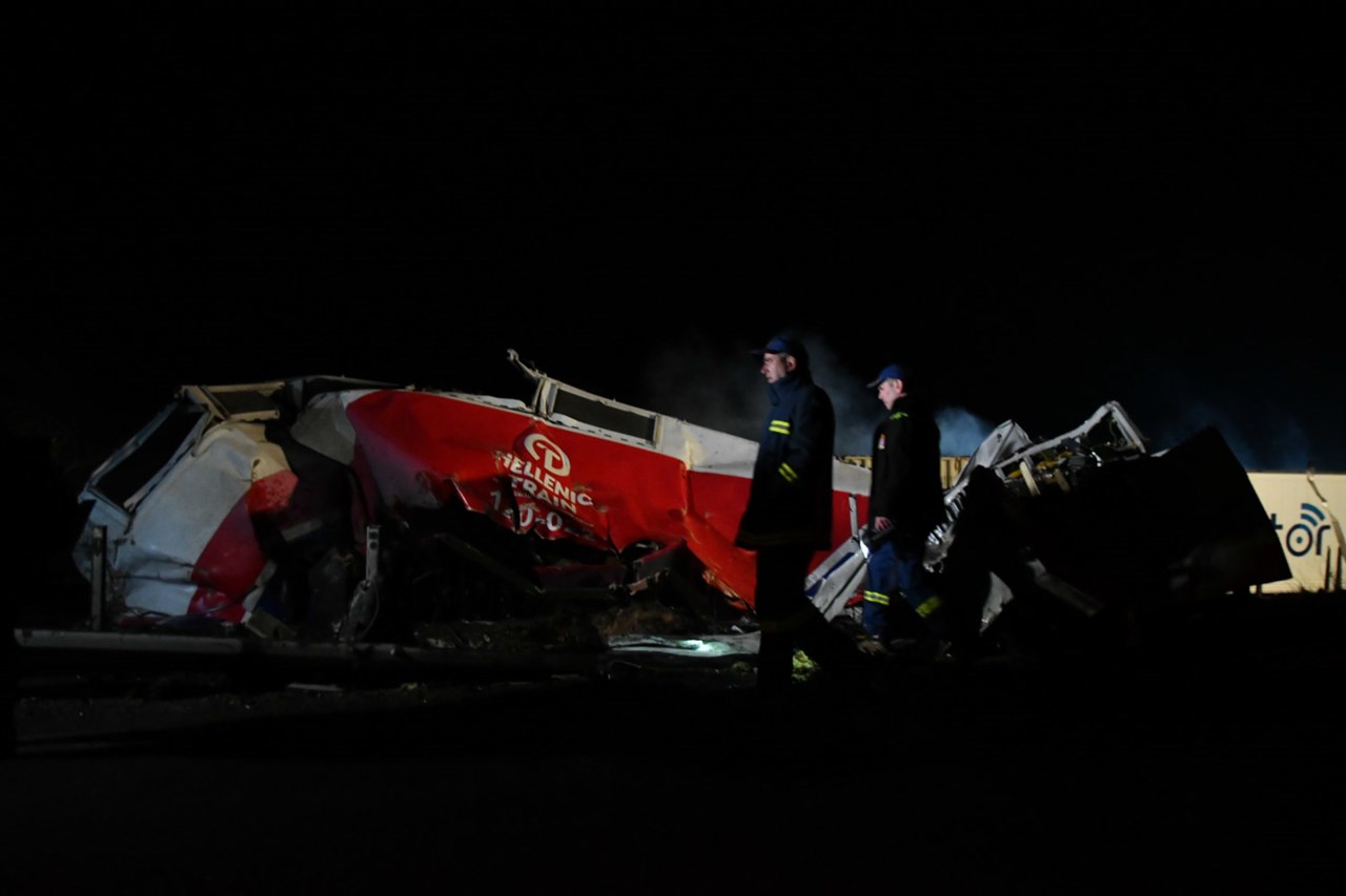 Τα φωτογραφικά στιγμιότυπα απαθανατίζουν το μέγεθος της καταστροφής, όπως και τις προσπάθειες που καταβάλουν οι πυροσβέστες μέσα στα διαλυμένα βαγόνια συνεχίζοντας την πολύωρη επιχείρηση απεγκλωβισμού: