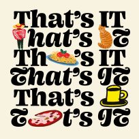 Οι εικονογραφήσεις του Michele Bruttomesso (Βιτσέντσα, περιφέρεια του Βένετο), της Chiara Fracella, γνωστή ως Illudio(Σαλέντο, Απουλία), της Maria Mangiapane (Αγκριτζέντο, Σικελία), της Sara Passamonti (Πεσκάρα, Αμπρούτσο) και του Lucio Schiavon (Βενετία) αφηγούνται τους τόπους των καλλιτεχνών με έναν τόσο πρωτότυπο, αυθεντικό όσο και οικείο τρόπο, οδηγώντας τον επισκέπτη από το Βορρά ως το Νότο, από τη θάλασσα ως τις πόλεις, αποκαλύπτοντας ένα εκρηκτικό και πλούσιο μωσαϊκό μίας χώρας που βρίσκει τη μοναδικότητά της μέσα από τις ατελείωτες διαφορές της. Στο That’s IT λοιπόν βρίσκουμε μια ονειρική Βενετία με περισσότερες γόνδολες από τουρίστες, ένα φρενήρες Μιλάνο με βιομηχανίες, γρήγορους καφέδες, τέχνη και βιασύνη (Schiavon). Υπάρχει η “slow” Σικελία με τις λαϊκές αγορές της, τα “κανόλι” στην ύπαιθρο και την πάστα ως σύμβολο ευτυχίας (Mangiapane). Το aperitivo μεταξύ φίλων στην πόλη και μια πίτσα έτοιμη να “αιχμαλωτίσει” τον πελάτη (Bruttomesso). Το ποιητικό Σαλέντο με γλυκά πρωινά και αλμυρά σνακ στη θάλασσα, μαζί με τα πλέον διάσημα spritz & tramezzini (Illudio). Τα εμβληματικά σπαγγέτι πάνω σε καρό τραπεζομάντιλο και το brodetto pescarese, γνήσιο πιάτο της Αδριατικής ακτής, καθώς και μία στιγμή Dolce Vita όπου το στυλ δεν είναι απόν ούτε κατά τη διάρκεια ενός καφέ στο μπαλκόνι.