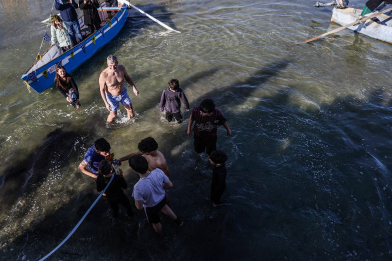 Στα νερά της λίμνης βούτηξαν αρκετά παιδιά και τον σταυρό έπιασε ο Χρήστος Παπακώστας, γιος του αντιδημάρχου Καθαριότητας και Ανακύκλωσης του Δήμου Κιλκίς, Κωνσταντίνου Παπακώστα.
