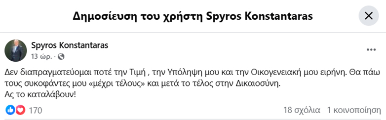 Αναλυτικά η ανάρτηση – προαναγγελία του Σπύρου Κωνσταντάρα: