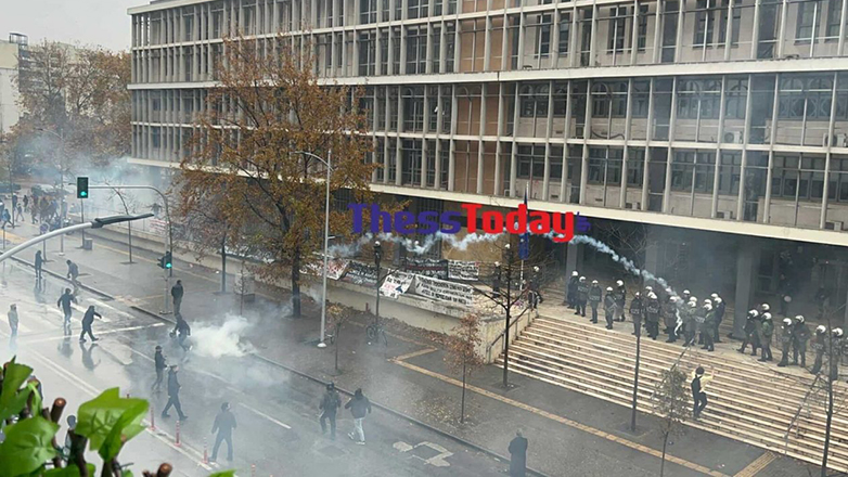 Επεισόδια με τα ΜΑΤ ξέσπασαν πριν λίγη ώρα έξω από το δικαστικό μέγαρο της Θεσσαλονίκης, όταν αναρχικοί/αντιεξουσιαστές που είχαν συγκέντρωση  αλληλεγγύης στους χθεσινούς 112 συλληφθέντες  της πορείας για την επέτειο του Αλέξη Γρηγορόπουλου, συγκρούστηκαν με τις αστυνομικές δυνάμεις.
