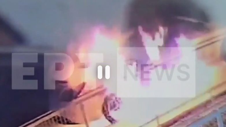 Στο βίντεο που φέρνει στη δημοσιότητα η ΕΡΤ, φαίνεται η στιγμή που ένας εμπρηστής βάζει φωτιά σε ένα από αυτά τα αυτοκίνητα.