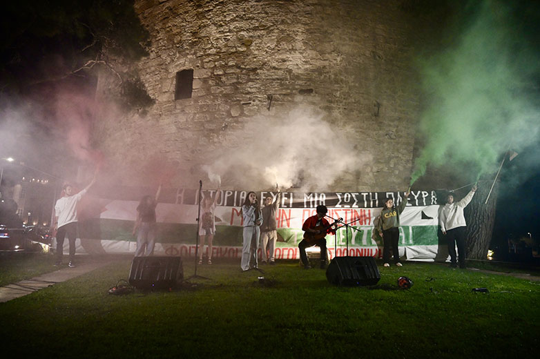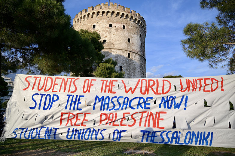 Ολονύχτια δράση αλληλεγγύης προς τον λαό της Παλαιστίνης πραγματοποιούν φοιτητικοί σύλλογοι, συνδικάτα, σωματεία εργαζομένων και άλλες συλλογικότητες της Θεσσαλονίκης.