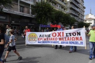 Με σύνθημα «όχι στον εργασιακό μεσαίωνα!» μέλη εργατικών σωματείων και φορέων, φοιτητικοί σύλλογοι, αγροτικοί σύλλογοι και σωματεία αυτοαπασχολούμενων ΕΒΕ, ζητούν να μην περάσει το νέο εργασιακό νομοσχέδιο, που «οδηγεί στην υποδούλωση».