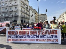 Στους δρόμους της Θεσσαλονίκης έχουν βγει χιλιάδες πολίτες για να απεργήσουν και να διαδηλώσουν ενάντια στο εργασιακό νομοσχέδιο που τέθηκε σε συζήτηση σήμερα στη Βουλή.