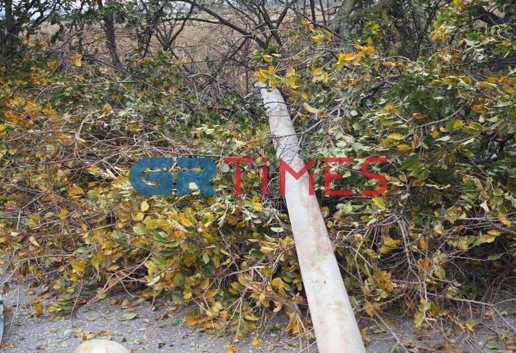 Κολώνα και δέντρο έπεσαν πάνω στον δρόμο προς το αεροδρόμιο