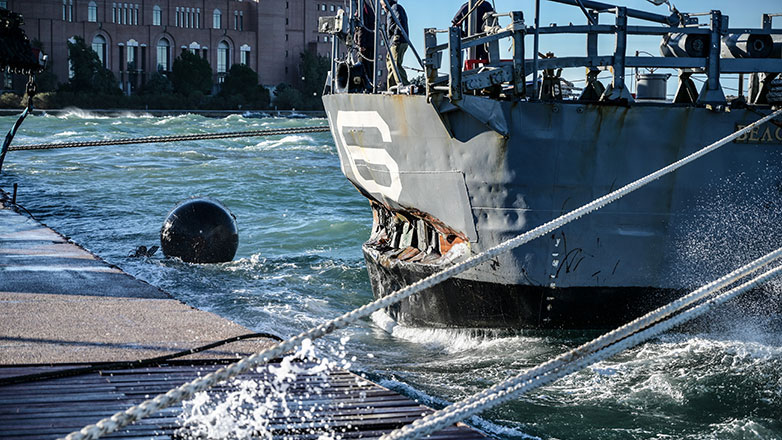 Σύμφωνα με το voria, μετά το μεγάλο ρήγμα που άνοιξε στο σκαρί του, το ιστορικό αντιτορπιλικό πλοίο μετακινήθηκε στο λιμάνι ώστε να καταγραφούν οι ζημίες, να γίνει πλήρης απάντληση των υδάτων που εισέρρευσαν και να γίνουν εργασίες αποκατάστασης σε ένα προστατευόμενο από τους ανέμους σημείο.