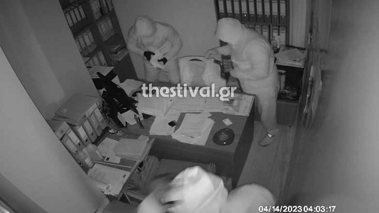 Ανοίγουν μία από τις εισόδους του εστιατορίου και εισχωρούν στο γραφείο της διεύθυνσης της επιχείρησης με σκοπό να διαρρήξουν το χρηματοκιβώτιο. Οι κάμερες ασφαλείας καταγράφουν κάθε τους κίνηση. Πρόκειται για τα μέλη της εγκληματικής ομάδας που από τον Φεβρουάριο έως τον Μάιο του 2023 είχε ξαφρίσει εταιρίες και κοσμηματοπωλείο στην ανατολική Θεσσαλονίκη. Η λεία τους ήταν περίπου 316.000 ευρώ.