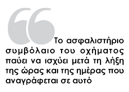 • Το ασφαλιστήριο συμβόλαιο του οχήματος παύει να ισχύει μετά τη λήξη της ώρας και της ημέρας που αναγράφεται σε αυτό.