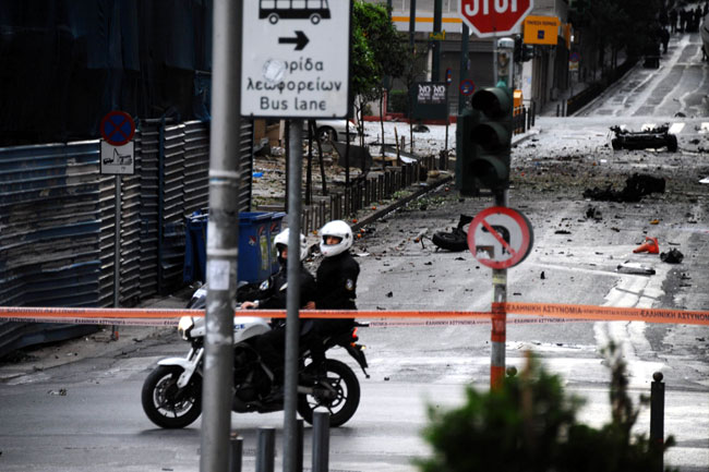 Από το Ι.Χ. έχει μείνει μόνο η μηχανή. Η αστυνομία έχει προχωρήσει σε αποκλεισμό των οδών Αμερικής, Πανεπιστημίου και Σταδίου.