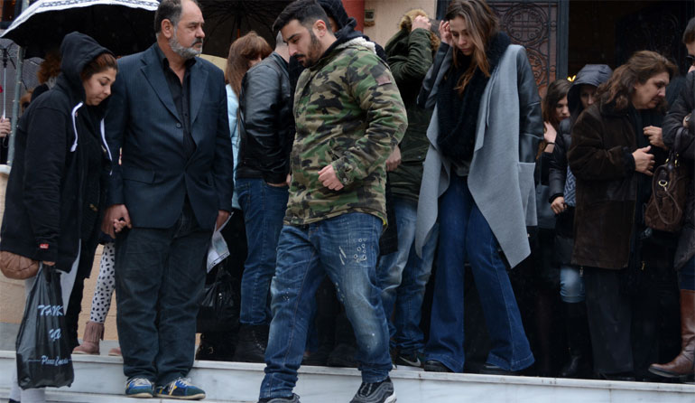 Από τις εννέα το πρωί της Κυριακής, συγγενείς, φίλοι, καλλιτέχνες και απλός κόσμος βρέθηκαν στον Ιερό Ναό του Αγίου Σπυρίδωνα για να στηρίξουν την οικογένεια και να αποτίσουν φόρο τιμής στον τραγουδιστή.