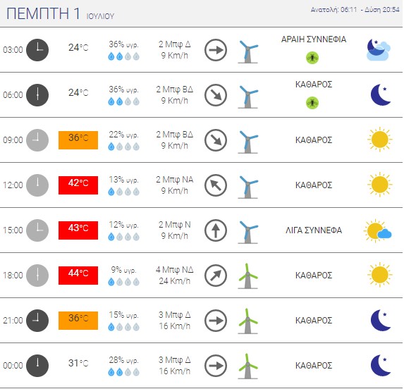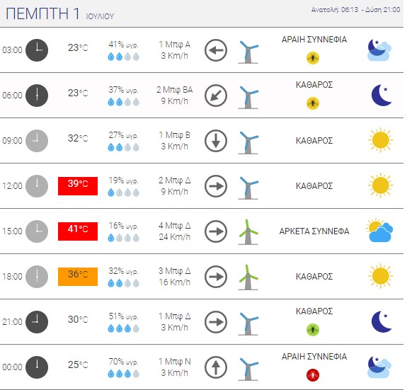Δείτε αναλυτικά τις καιρικές συνθήκες σε διάφορες πόλεις της χώρας την Πέμπτη 1 Ιουλίου σύμφωνα με το Εθνικό Αστεροσκοπείο Αθηνών: