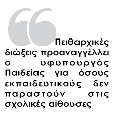 Σε σημερινή του συνέντευξη, ο κ. Κεδίκογλου προειδοποίησε τους εκπαιδευτικούς ότι σε περίπτωση που ορισμένοι εξ αυτών επιλέξουν να μην παρουσιαστούν στις αίθουσες, ως οφείλουν, τότε θα κινηθούν πειθαρχικές διαδικασίες και διώξεις.