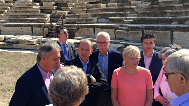 Η κα Κρέτσου ενημερώθηκε από τους αρχαιολόγους και τον πρόεδρο της επιστημονικής επιτροπής του έργου του Αρχαίου Θεάτρου Αθ. Τζαφάλια για την πρόοδο των εργασιών ανάδειξής του.