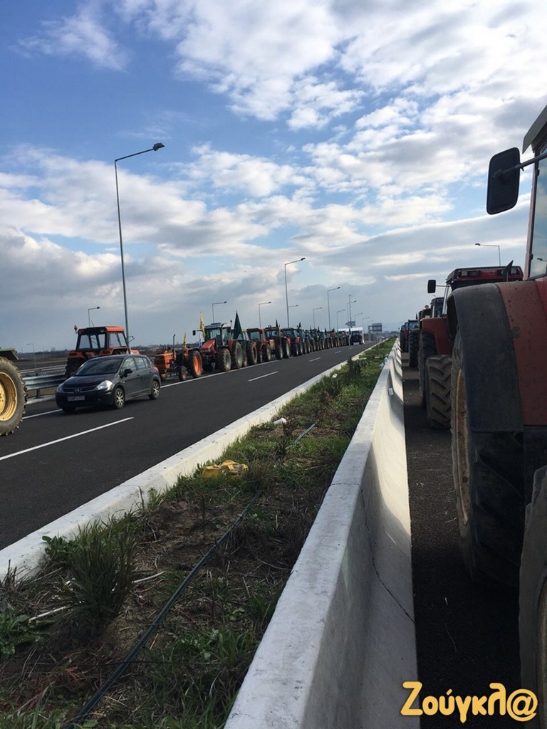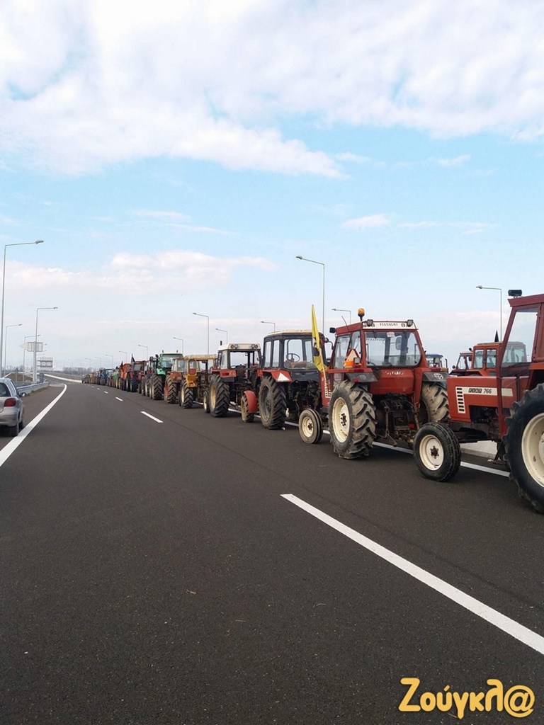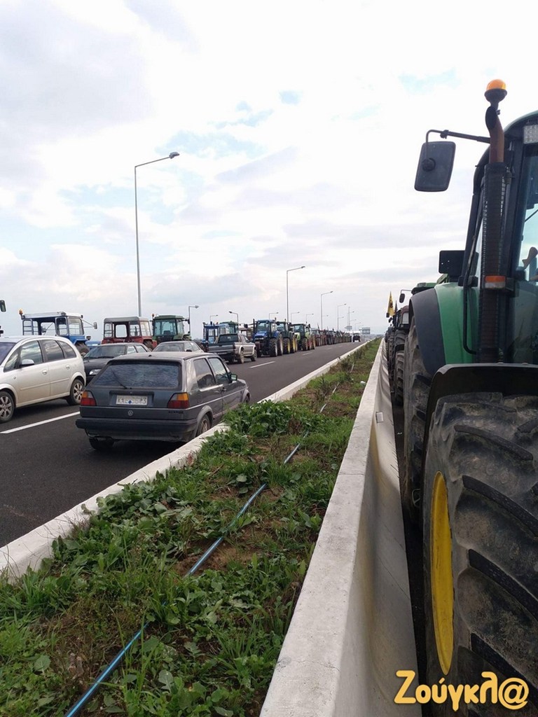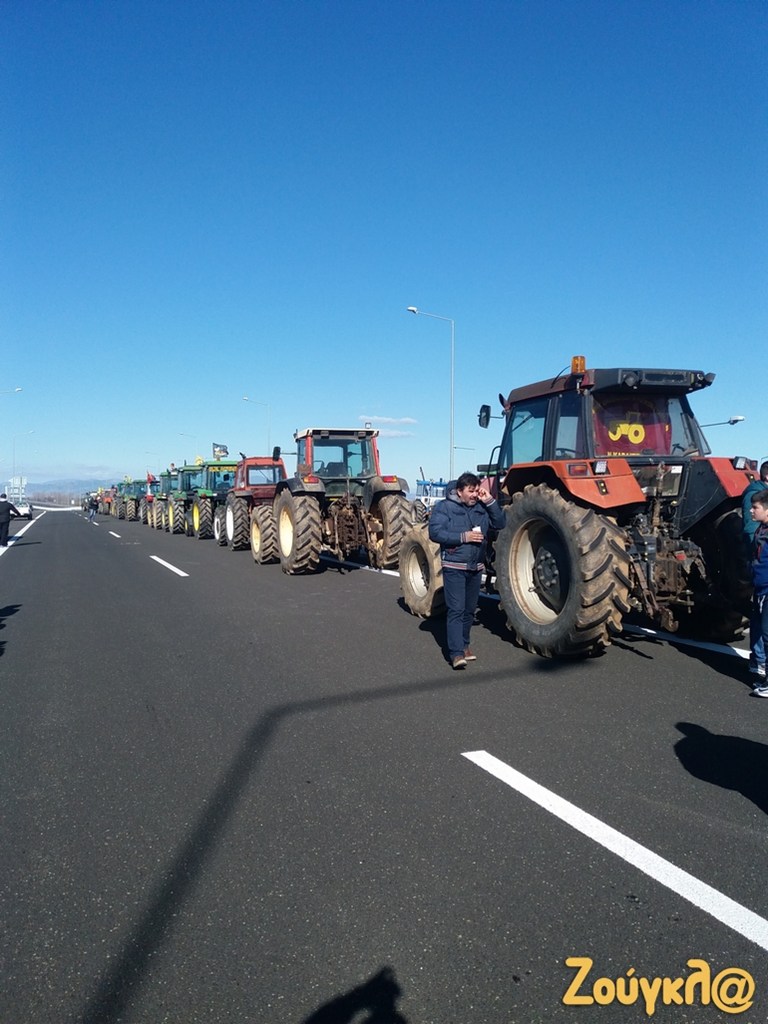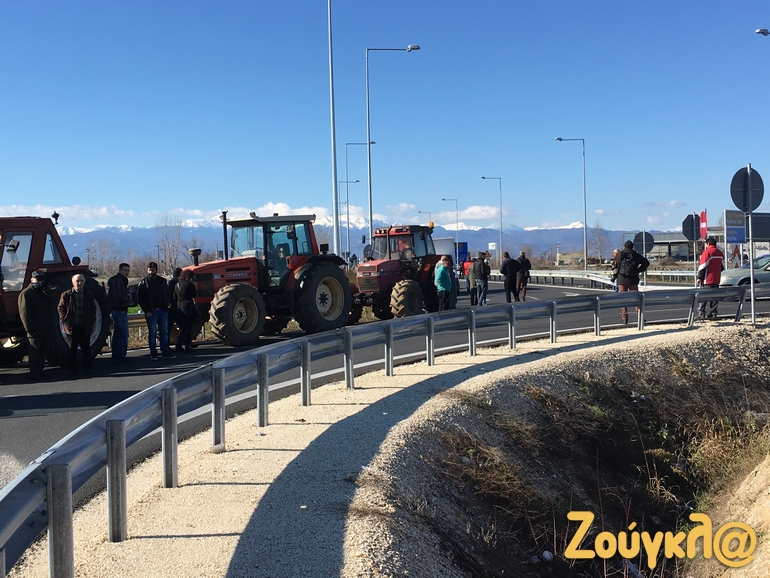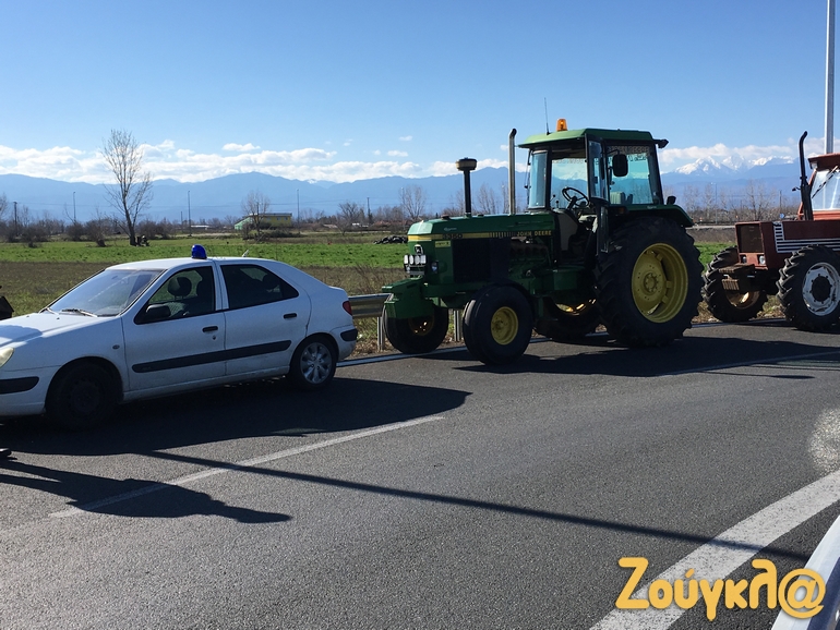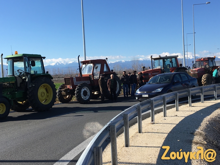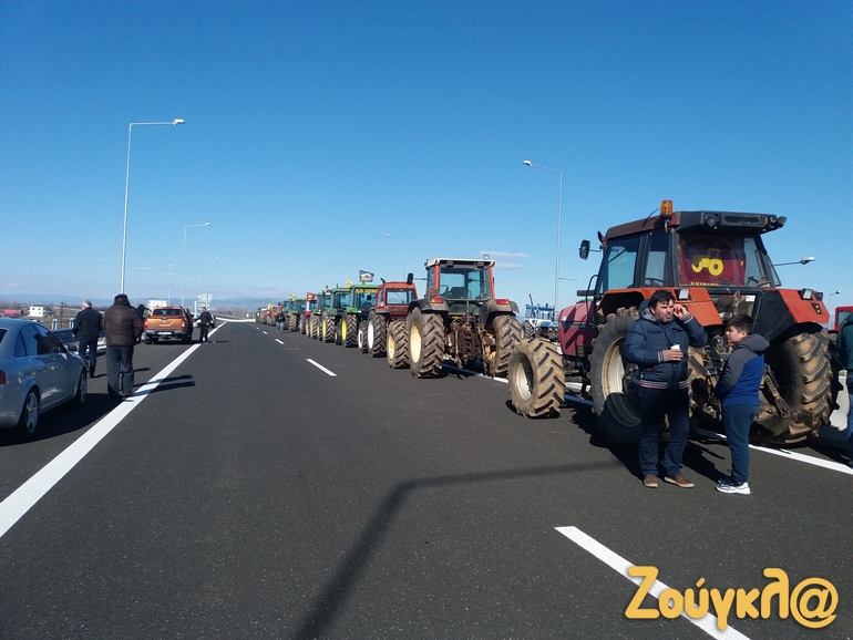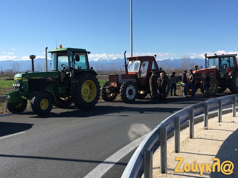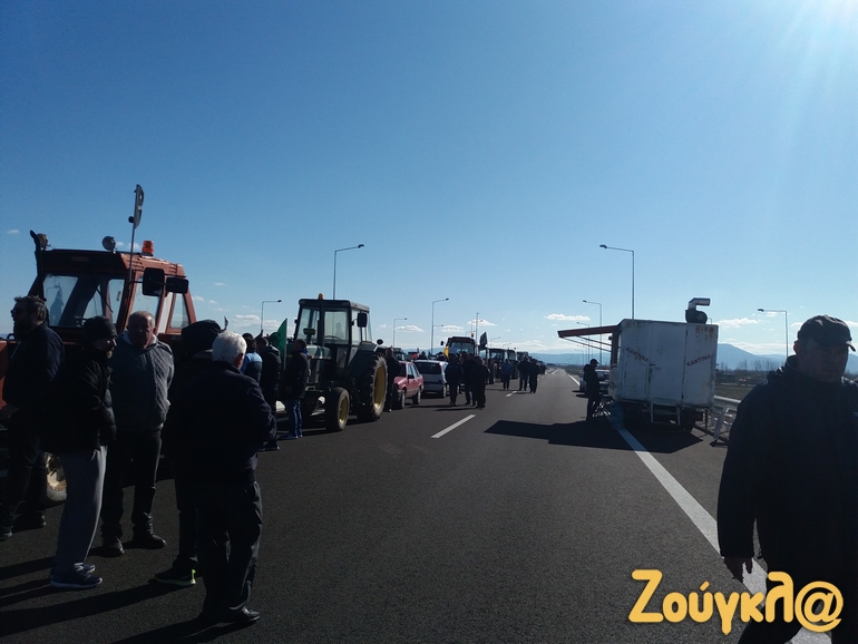 Το μπλόκο των αγροτών έχει στηθεί στον αυτοκινητόδρομο Ε65 στο ύψος του Δέλτα με τα αγροτικά μηχανήματα να κλείνουν τον δρόμο.