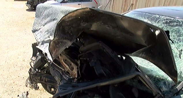 Το καπό έχει τσαλακωθεί σαν ένα κομμάτι χαρτί, ενώ ο κινητήρας έχει εξαφανιστεί και το παρμπρίζ έχει γίνει θρύψαλα.
