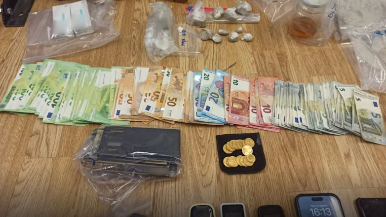 Τα 7.790 ευρώ, οι χρυσές λίρες και τα ναρκωτικά, που κατέσχεσε η Αστυνομία
