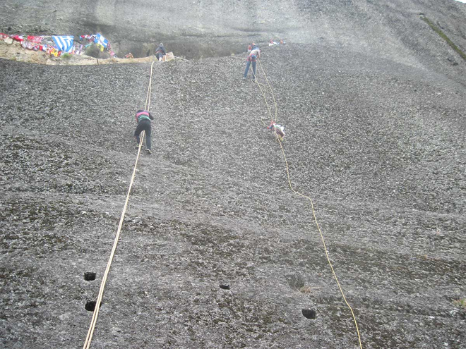 Φέτος ανέβηκαν από τους αναρριχητές τα νέα μαντήλια που θα κατέβουν του χρόνου για να μοιραστούν στους πιστούς.