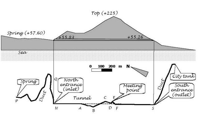 Το όρυγμα αυτό ήταν «αμφίστομον» όπως το χαρακτήρισε ο Ηρόδοτος, χάρις στον οποίον έγινε γνωστό. Η σήραγγα διανοίχτηκε από τα 2 άκρα της ταυτόχρονα και η συνάντηση των 2 τμημάτων κάτω από την κορυφή του βουνού πραγματοποιήθηκε με αξιοθαύμαστη μαθηματική ακρίβεια. Αν σκεφθεί κανείς ότι για να ανοιχτούν οι σήραγγες του Μετρό Αθηνών επιστρατεύθηκαν τα πιο σύγχρονα μηχανήματα, σε μια εποχή όπως στα μέσα του 6ου αι. π.Χ. με εργαλεία που στην εποχή μας μοιάζουν παιχνιδάκια, πόσες εργατοώρες και πόσοι άνθρωποι χρειάστηκαν για να ανοίξουν το όρυγμα των 1.036 μ. με διαστάσεις 1,80×1,80 μ. μέσα στο βουνό;