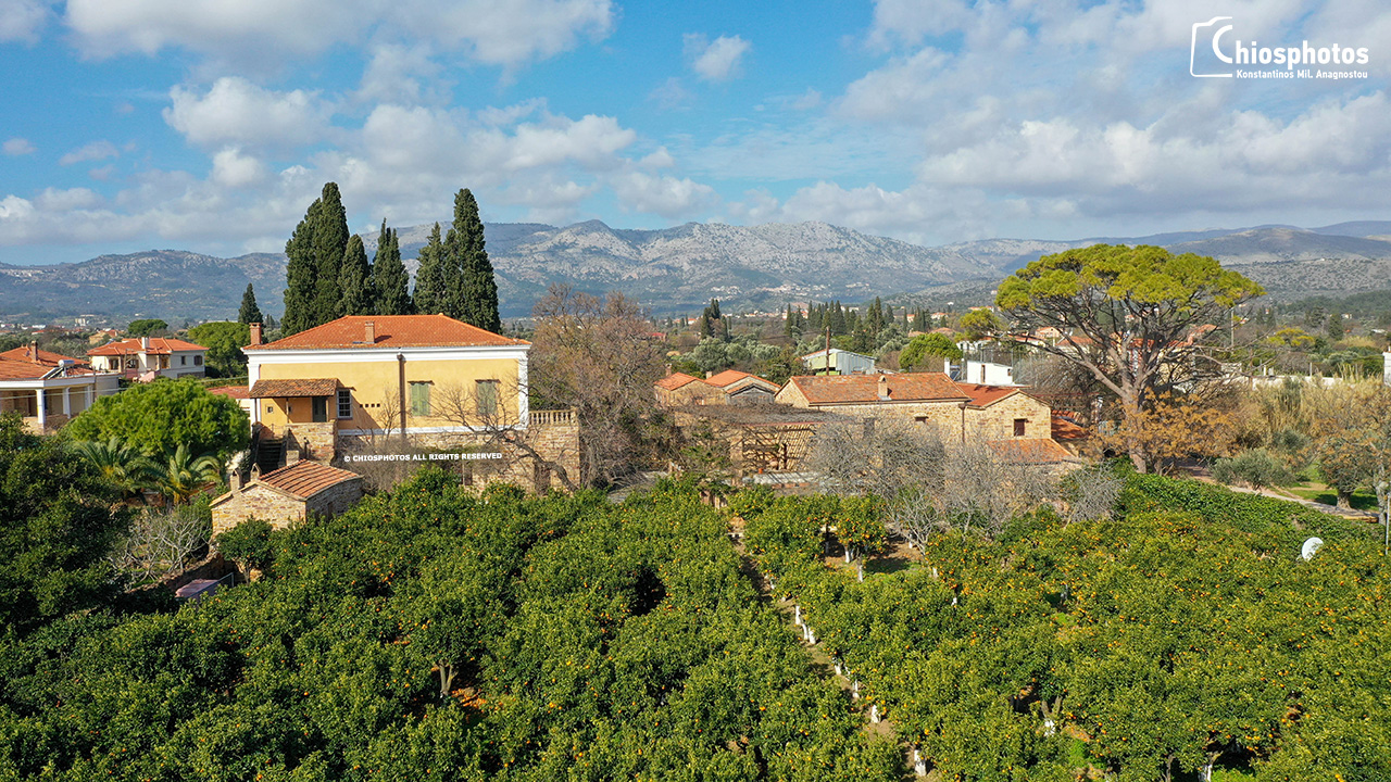 Ο Κάμπος της Χίου είναι η εύφορη περιοχή στα νότια της πόλης η οποία διαιρείται σε μεγάλα κτήματα ήδη από την εποχή της Γενουατοκρατίας. Τα κτήματα ανήκαν σε μεγάλες οικογένειες οι οποίες ασχολούνταν με το διαμετακομιστικό εμπόριο, σε όλη τη Μεσόγειο και τη Μαύρη Θάλασσα, φτάνοντας μέχρι το Άμστερνταμ και το Λονδίνο. Το εύφορο έδαφος και το αρκετό νερό που διαθέτει η περιοχή είναι η αιτία που επέτρεψε την εντατική καλλιέργεια εσπεριδοειδών στον Κάμπο, τα “μανταρινοπορτόκαλα” όπως λέγονται, προϊόν με το οποίο το όνομα Κάμπος έχει ταυτιστεί.