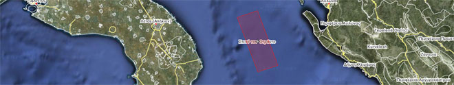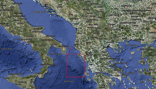 (Η απόσταση μεταξύ Ιονίων Νήσων και στενών του Ότραντο διακρίνεται στο “μεγάλο τετράγωνο”)