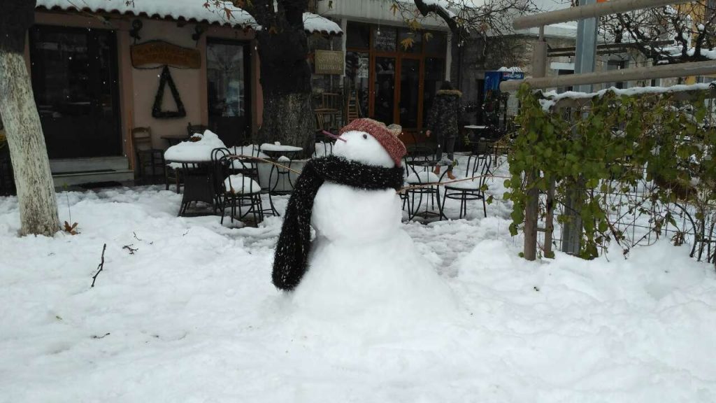 Ευτυχώς δεν έχουν καταγραφεί προβλήματα γι’ αυτό τόσο οι κάτοικοι όσο και οι επισκέπτες των Ανωγείων δεν χάνουν το κέφι τους και δημιουργούν χιονάνθρωπους!