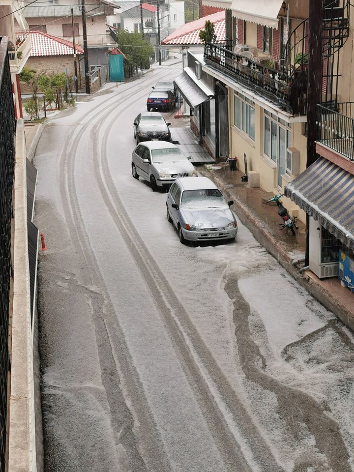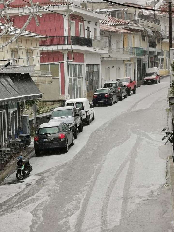 Οι εικόνες που ακολουθούν είναι από τη Δεσκάτη Γρεβενών, όπου η πόλη ντύθηκε στα λευκά από το χαλάζι: