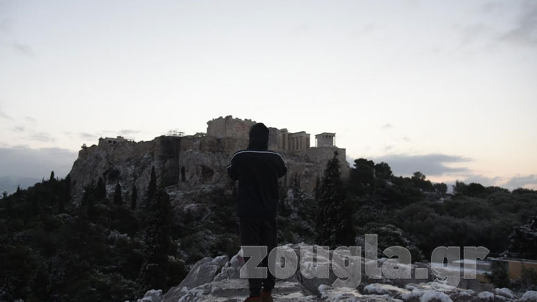 Στο κέντρο της Αθήνας ένα λευκό πέπλο σκέπασε τους δρόμους και τα κτήρια, χαρίζοντας μοναδικές εικόνες.