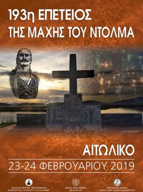 Tο βράδυ του Σαββάτου 23 Φεβρουαρίου και τo πρωί της Κυριακής 24 Φεβρουαρίου πραγματοποιήθηκε στο Αιτωλικό η 193η Επέτειος της Μάχης του Ντολμά.