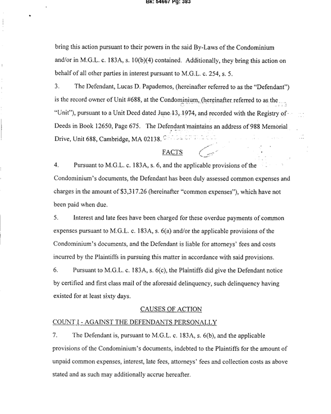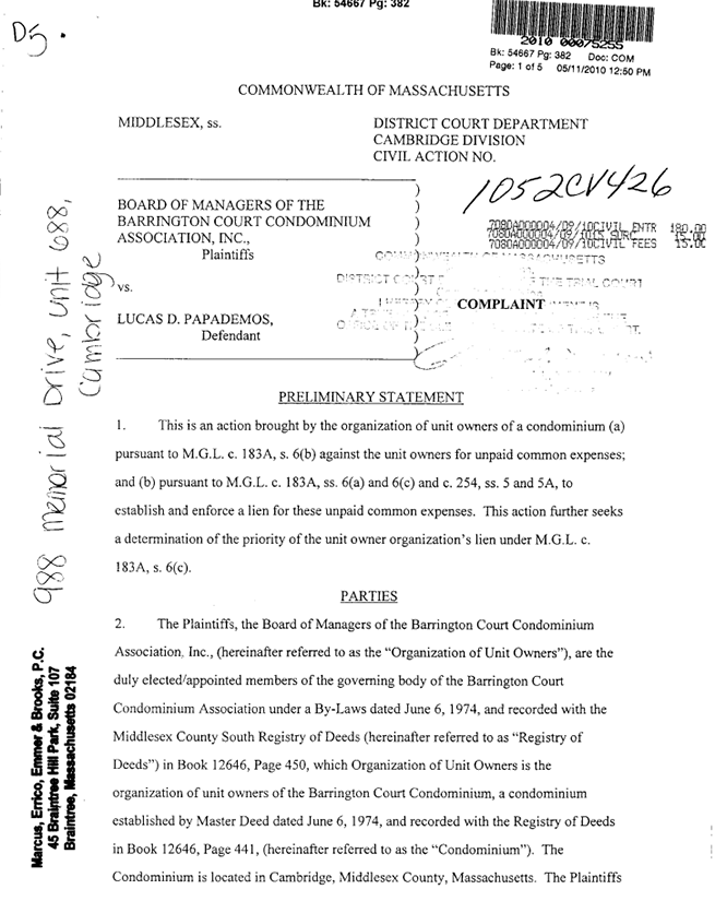 Ο κ. Παπαδήμος, σύμφωνα με τα δικόγραφα τα οποία βρίσκονται στη διάθεση του zougla.gr, είχε «λησμονήσει» να πληρώσει τα κοινόχρηστα για ένα διαμέρισμα που διατηρούσε στην Μασαχουσέτη των ΗΠΑ.