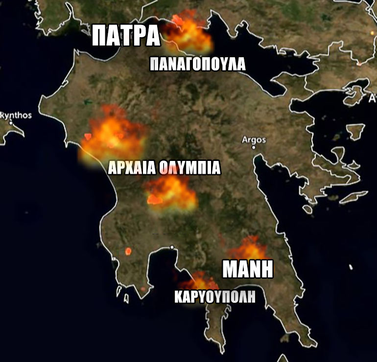 Μαίνονται οι πυρκαγιές σε ολόκληρη τη χώρα, με τα βασικά μέτωπα να βρίσκονται στην Αττική, την Εύβοια, την Ηλεία και τη Μάνη.
