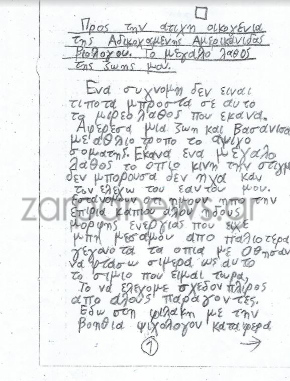 Αυτό είναι ολόκληρο το γράμμα που έγραψε ο 28χρονος: