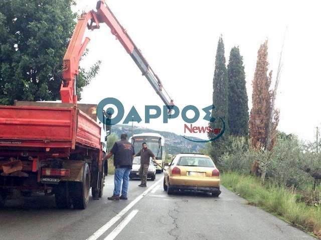Με γερανοφόρο όχημα απομακρύνθηκε από την άκρη του δρόμου Ι.Χ. το οποίο εξετράπη της πορείας του κάτω από αδιευκρίνιστες συνθήκες και μπήκε μέσα σε χωράφι με ελιές στην Καρδαμύλη Μεσσηνίας.