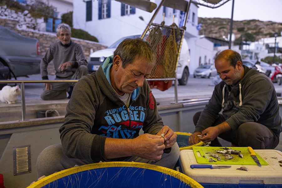 «Λοιπόν, είναι ο Γιώργος, εμείς, ο Νικόλας, ο Γιάννης, ο Κώστας, ο Μιχάλης, ο Λευτέρης, ο Βαγγέλης και στη συνέχεια, ο Χάρης, ο Δημήτρης, περίπου γύρω στα δέκα αλιευτικά. Οι επιχειρήσεις είναι οικογενειακές» λέει η Δήμητρα Νομικού στο ΑΠΕ-ΜΠΕ. Αυτή η ομάδα των ψαράδων που, με προσωπικό κόστος και εργασία, ανέλαβαν την ευθύνη να αναγεννηθεί η θάλασσα της Αμοργού, η θάλασσα όλων μας, πριν να είναι αργά.