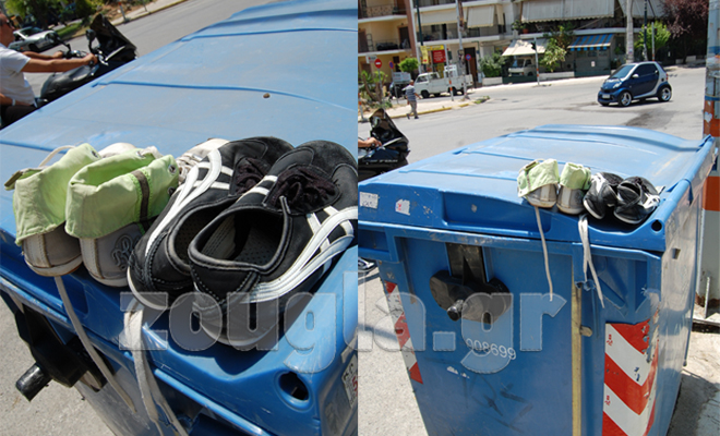 Όμως αν προσέξει κανείς στην καθημερινότητα που έχει γίνει αδυσώπητη για πολλά νοικοκυριά που βρίσκονται κάτω από το όριο της φτώχειας, τα διάφορα μεταχειρισμένα αντικείμενα πρώτης ανάγκης, όπως αυτά τα παπούτσια, δεν τα παίρνουν μόνο όσοι συστηματικά ψάχνουν για κάτι χρήσιμο στα σκουπίδια, αλλά και περαστικοί, που βιαστικά, τα κρύβουν συνεσταλμένα σε μια σακούλα ή τσάντα προκειμένου να διαφυλάξουν την αξιοπρέπεια τους και να μην τους δει κάποιος από τη γειτονιά…