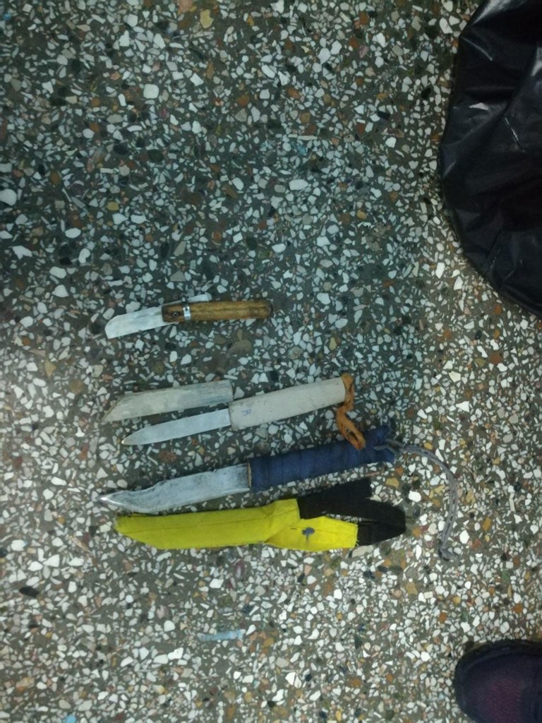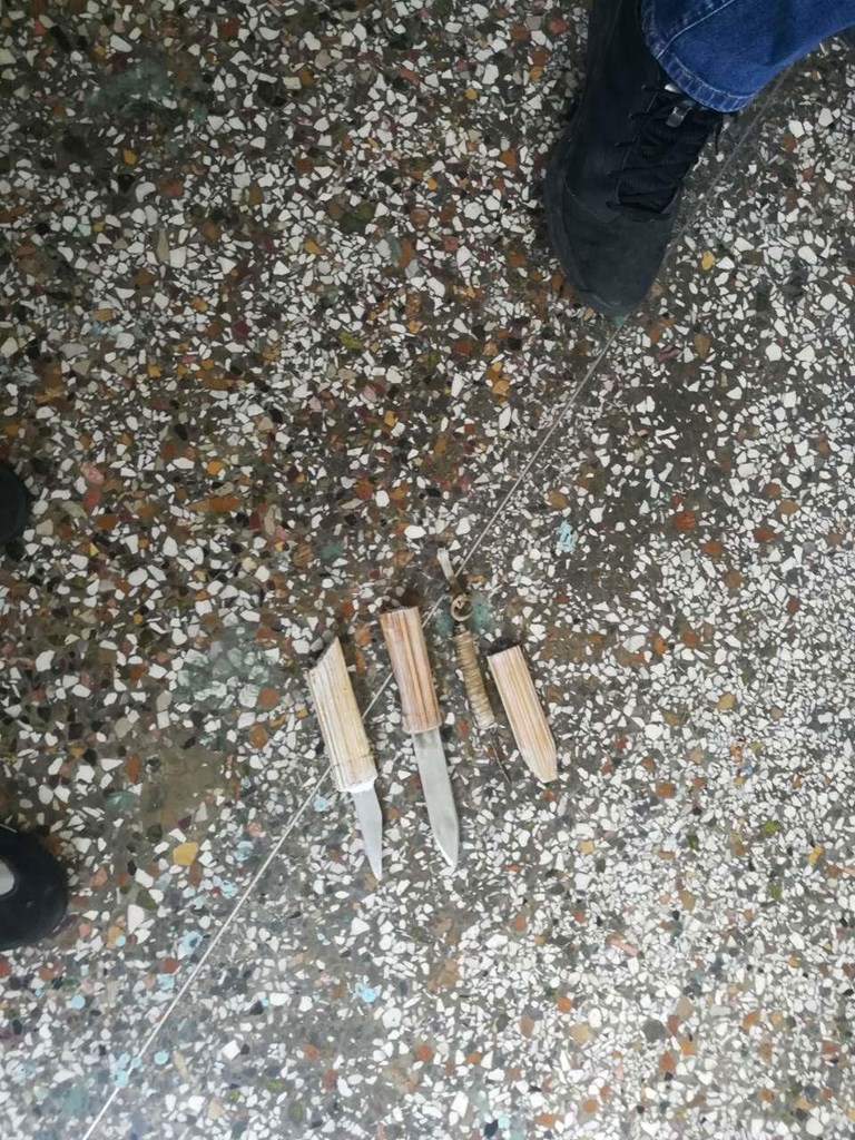 Σε μόλις πέντε ώρες ερευνών που πραγματοποιήθηκαν σε τρεις πτέρυγες των φυλακών Κορυδαλλού, όπως αναφέρουν πηγές και φαίνεται στις παρακάτω φωτογραφίες που δόθηκαν στη δημοσιότητα από τα ΜΜΕ εντοπίστηκαν τάβλες με καρφιά, κοντάρια με λόγχες, καμουφλαρισμένα γυαλιά όπως επίσης και μεγάλα αυτοσχέδια μαχαίρια.