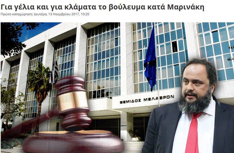 Όσο καθυστερεί αυτή η διαδικασία, τόσο καθυστερεί και η υποβολή αναίρεσης από τον Άρειο Πάγο κατά των απαλλακτικών διατάξεων που περιέχονται σε αυτό. Με λίγα λόγια, διαπιστώνεται μία διαχρονική και συστηματική διάθεση συγκεκριμένων δικαστικών κύκλων να καθυστερήσουν όσο το δυνατόν πιο αποτελεσματικά τις διαδικασίες που αφορούν σε μία υπόθεση στην οποία εμπλέκεται, κατηγορείται και θα δικαστεί ο Βαγγέλης Μαρινάκης. Πολλοί κάνουν λόγο για οσμή παραδικαστικού, μόνον που η οσμή έχει καταντήσει αφόρητη.