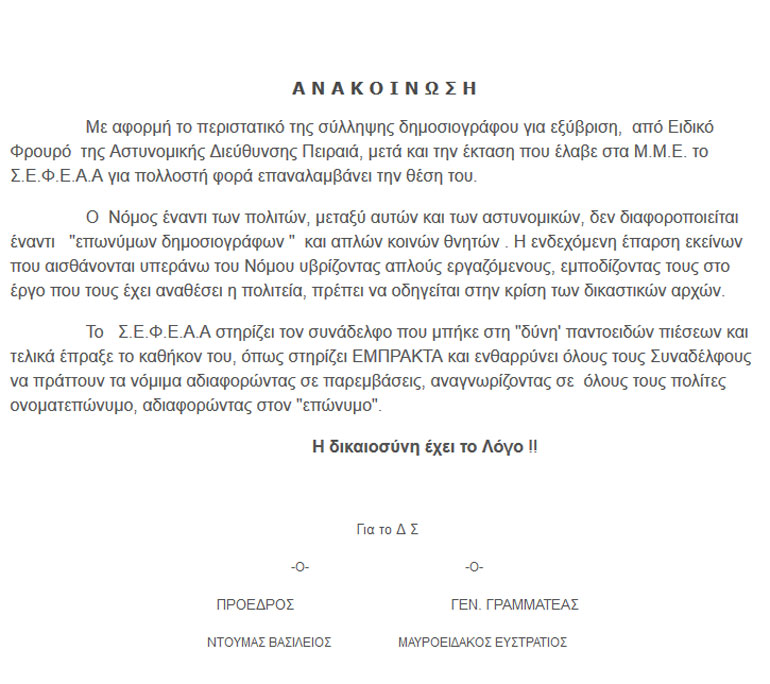 H ανακοίνωση των ειδικών φρουρών