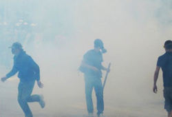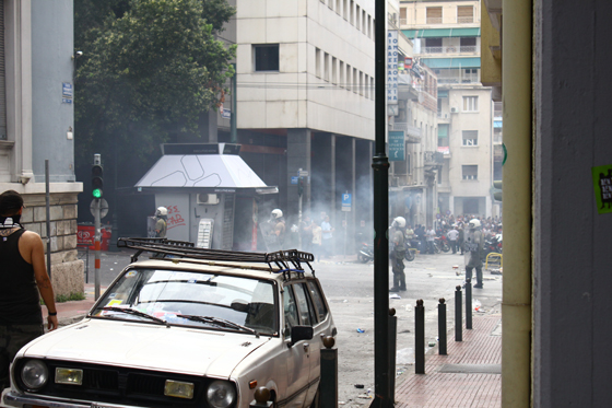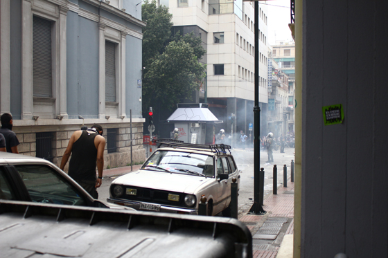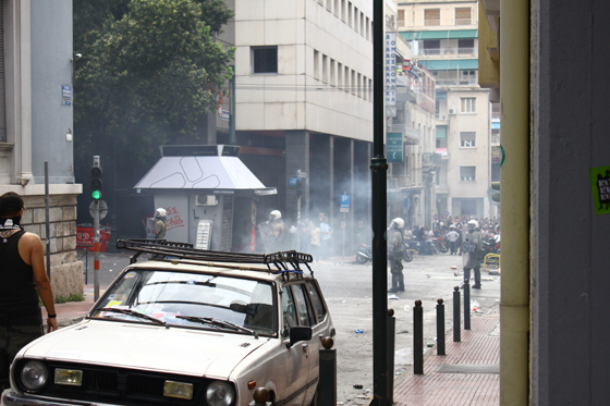 Παρόμοια εικόνα και στη συμβολή των οδών Πανεπιστημίου και Βασιλίσσης Σοφίας, όπου οι δυνάμεις των ΜΑΤ εκτόξευσαν βομβίδες κρότου-λάμψης, ενώ έγινε και ρίψη χημικών.