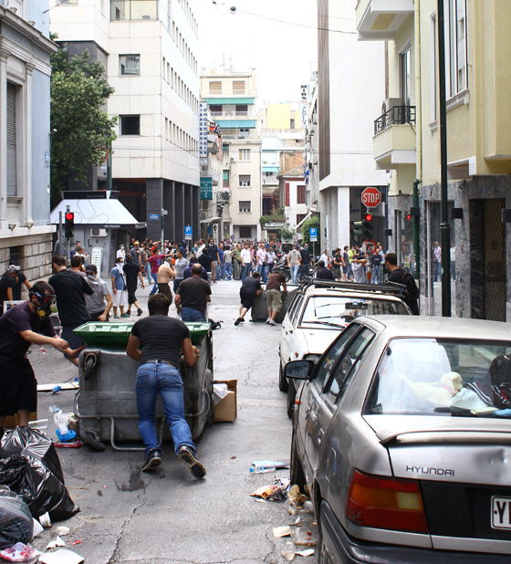 Ομάδα «Αγανακτισμένων» πολιτών, θέλοντας να κατευνάσει τα πνεύματα, προχώρησε σε περιφρούρηση αστυνομικών, προκειμένου να διέλθουν χωρίς πρόβλημα από τη Λ. Αμαλίας και άρχισε να συγκρούεται με τους «μπαχαλάκηδες».