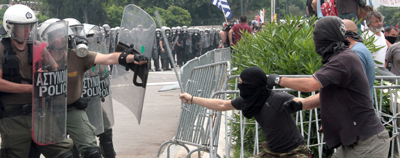 Πάνω απ΄ όλα, όμως, ήταν οι μέχρι σήμερα μεγάλοι απόντες της πλατείας Συντάγματος, που έμελε να αλλάξουν την εικόνα των κινητοποιήσεων και να γίνουν ο καταλύτης ακόμη και για τις πολιτικές εξελίξεις: οι γνωστοί-άγνωστοι κουκουλοφόροι ή κατ άλλους «μπαχαλάκηδες».