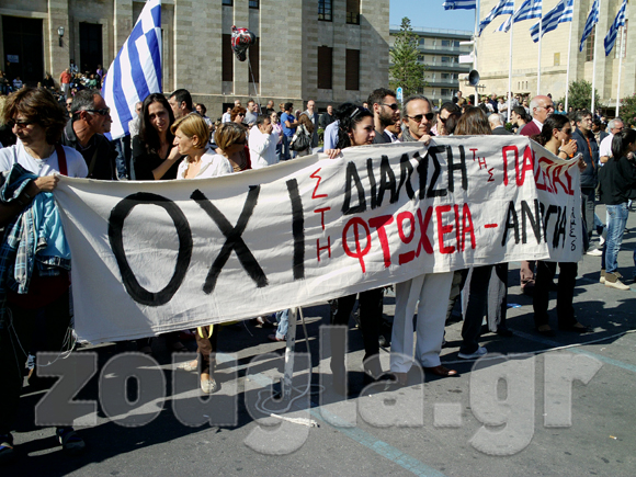 "Μπλόκο" στην παρέλασηΟ φετινός εορτασμός της επετείου της 28ης Οκτωβρίου ήταν αλλιώτικος από κάθε άλλη φορά, στη σκιά του «κουρέματος», στο πλαίσιο της συμφωνίας των Βρυξελλών.