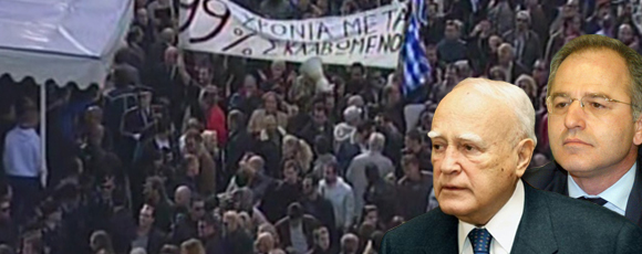 Φανερά ενοχλημένος αποχώρησε από την εξέδρα των επιστήμων της Θεσσαλονίκης ο Πρόεδρος της Δημοκρατίας Κάρολος Παπούλιας, καθώς δέχθηκε έντονες διαμαρτυρίες πολιτών. «Ποιοι με αποκαλούν προδότη, εγώ πολέμησαν 15 χρονών τον ναζισμό» ανέφερε και αποχώρησε με τους υπόλοιπους επισήμους. Η αστυνομία απομακρύνθηκε και οι διαμαρτυρόμενοι έκαναν κατάληψη στην εξέδρα, όπου έχουν αναρτήσει ένα πανό που αναγράφει «η οργή μας θα σας πνίξει» και έψαλαν τον Εθνικό Ύμνο.