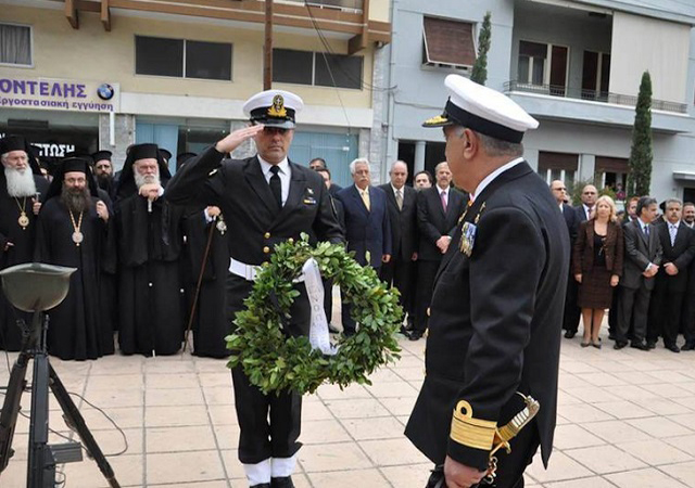 Στο πλαίσιο των εκδηλώσεων πραγματοποιήθηκε επιμνημόσυνη δέηση και κατάθεση στεφάνου, από το Διοικητή της ΣΝΔ.