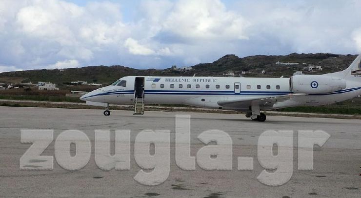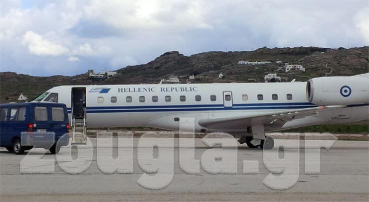Στον αερολιμένα Μυκόνου προσγειώθηκε το μεσημέρι της Τετάρτης το κυβερνητικό αεροσκάφος Embraer.