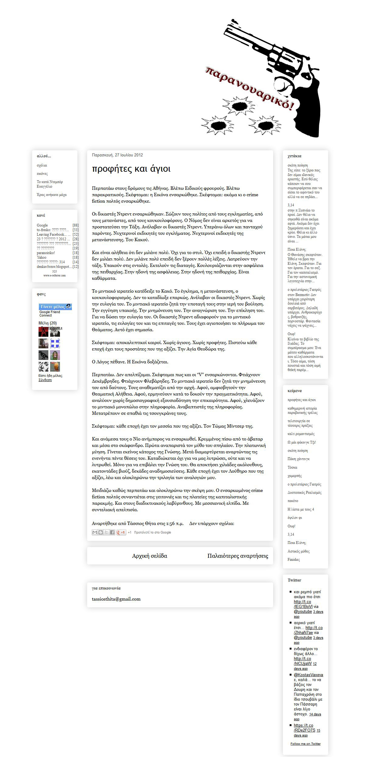 (Print Screen από blog στο οποίο παραπέμπει μέσα από τη σελίδα του στο Facebook)