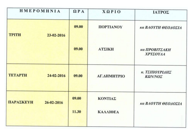 Το πρόγραμμα επισκέψεων ιατρών στα χωριά της Λήμνου από 22 έως 26 Φεβρουαρίου