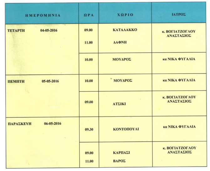 Το πρόγραμμα των επισκέψεων αγροτικών γιατρών στα χωριά της Λήμνου για την επόμενη εβδομάδα, ανακοίνωσε το νοσοκομείο του νησιού.